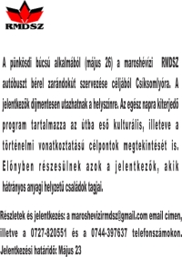 Részletek és jelentkezés: maroshevizirmdsz@gmail.com email címen, illetve a 0727-820551 és a 0744-397637 telefonszámokon.