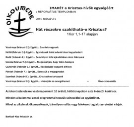 Imahét a Krisztus-hívők egységéért a Református templomban 2014. február 2-9