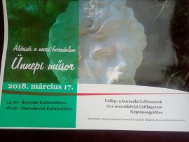 Szeretettel várunk mindenkit március 15-én 17 órától a római katolikus templomba az igeliturgiára és azután a templomkertbe a koszorúzásra. Március 17- én, szombaton 18 órától a maroshévízi Művelődési Házban ünnepi műsort adnak elő iskolánk Csillagszem tánccsoportja és a borszéki Czifrasarok néptánccsoport. Emlékezzünk együtt a '48-as szabadságharc 170. évfordulóján!