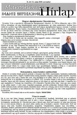 Megjelent a Maroshévízi Hírlap novemberi száma. A világhálón itt olvasható: http://hirlap.marosheviz.info/szam/10evf-11szam.pdf