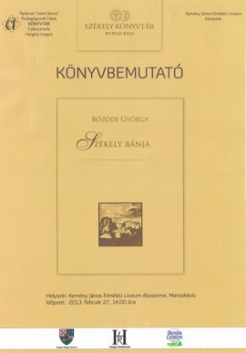 Holnap, február 27-én, 14 órai kezdettel iskolánkban könyvbemutató zajlik. Ezúttal Bözödi György: Székely bánja című alkotás kerül bemutatásra. E mű egyike a Székely Könyvtár című, 100 kötetesre tervezett könyvsorozatnak.