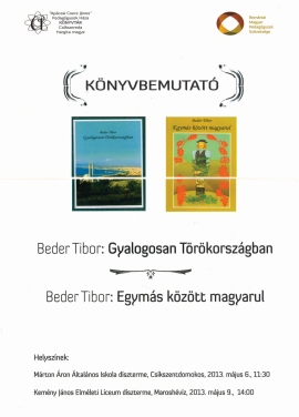 2013.május 9-én 14 órai kezdettel az "Apáczai Csere János" Pedagógusok Házának Könyvtára, a Romániai Magyar Pedagógusok Szövetsége és a Kemény János Elméleti Líceum könyvbemutatóra hív minden irodalomkedvelőt. Ezúttal Beder Tibor Gyalogosan Törökországban illetve Egymás között magyarul című alkotások kerülnek bemutatásra.. A könyvbemutató helyszíne: a Kemény János Elméleti Líceum díszterme.
