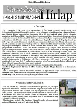 Megjelent a Maroshévízi Hírlap októberi száma (http://hirlap.marosheviz.info/szam/12evf-10szam.pdf). A tartalomból: