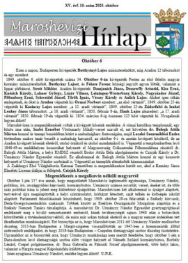 Megjelent a Maroshévízi Hírlap októberi száma (https://hirlap.marosheviz.info/szam/15evf-10szam.pdf). A tartalomból: Október 6