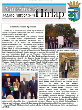 Megjelent a Maroshévízi Hírlap novemberi száma (https://hirlap.marosheviz.info/szam/15evf-11szam.pdf). A tartalomból: Urmánczy Nándor-díj átadása